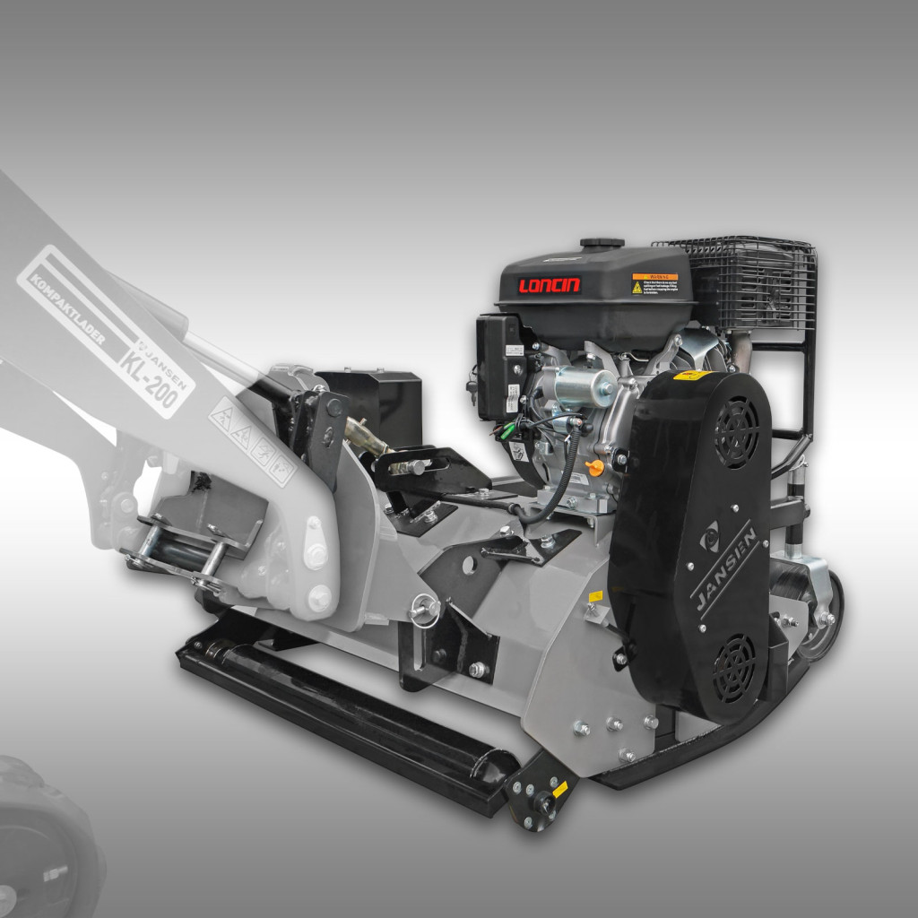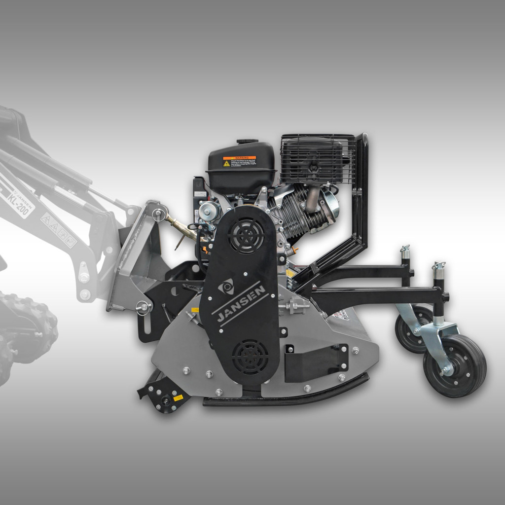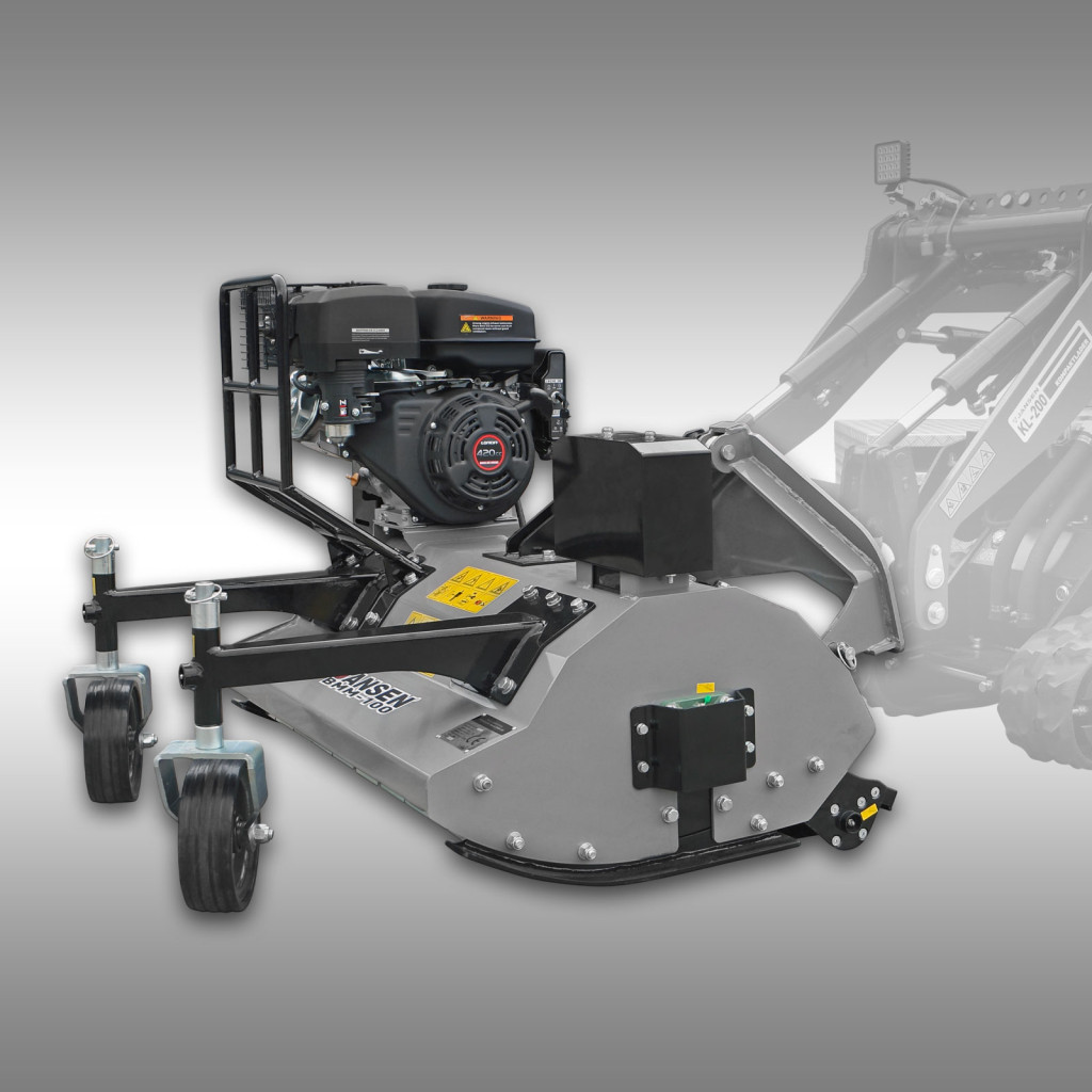 A JANSEN BMM-100 szárzúzó - mulcsozó tökéletes kiegészítője a JANSEN® KL-200 kompakt rakodónak. Ezt a robusztus szárzúzó - mulcsozó kifejezetten elülső felszerelésre tervezték, és lenyűgöző teljesítményű benzinmotorral rendelkezik, amely a fűnyírót a hordozó jármű hidraulikus rendszerétől teljesen függetlenül hajtja. Ez teszi a BMM-100-at ideális megoldássá a KL-200 számára, amely kiegészítő hidraulikus áramkör nélkül működik.